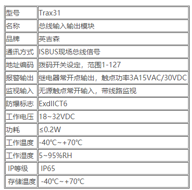 進線口③:1/2"NPT(內螺紋) 七、Trax31總線輸入輸出模塊接線方式
